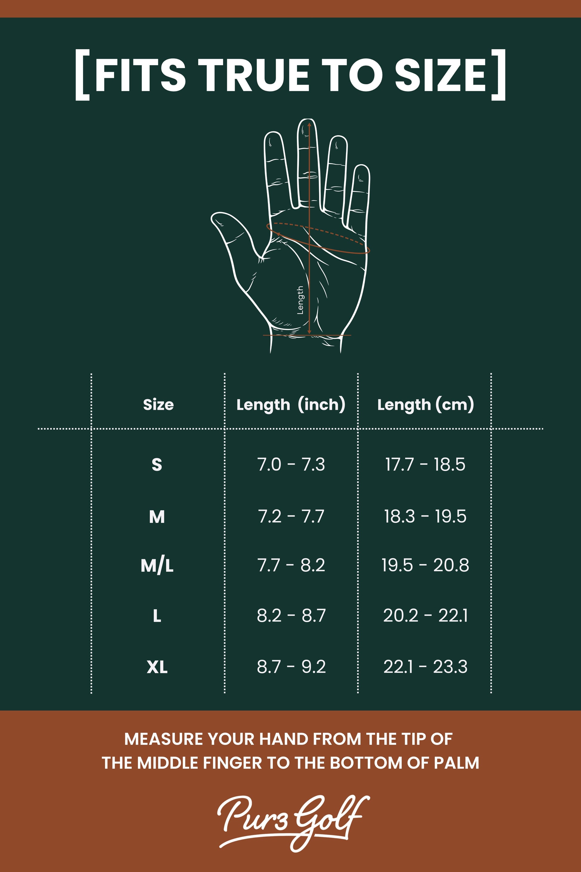 Available in S, M, ML, L, and XL. For both right-handed and left-handed golfers.